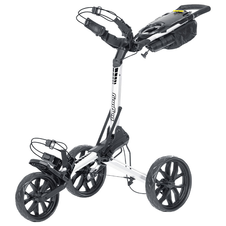 The Bag Boy Slimfold 3 Wheel trolley is a stylish, ultra-lightweight compact push trolley with a single-motion unfolding mechanism.