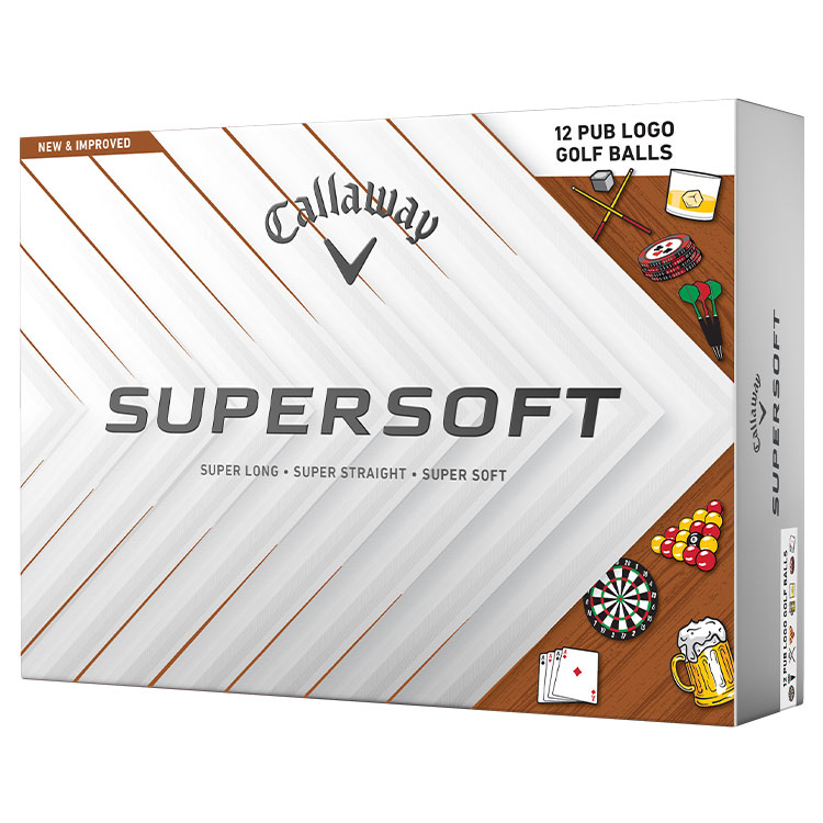 The Callaway Supersoft golf ball just got better. The new Supersoft is designed for increased ball speed with exceptional soft feel, control, and spin from tee-to-green. Callaway have advanced the cover, core, and construction to make the best Supersoft you've ever played. Now available in this limited edition release that captures the spirit of classic pub games.